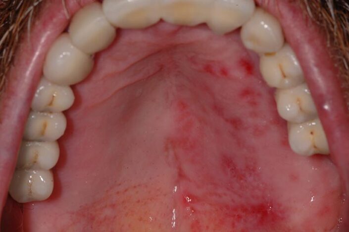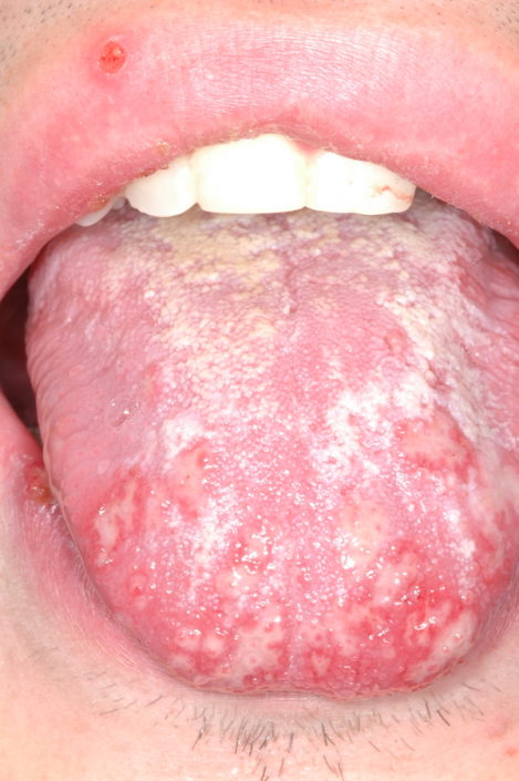 Una volta giunto all’età adulta la stomatite erpetica tende a manifestarsi con molta minor frequenza e con i medesimi sintomi della primaria ma solo a livello locale (fastidiose e dolorose lesioni erpetiche ) senza la febbre e il malessere generale. Essa si ripresenta in periodi di forte stress fisico e mentale o in casi di indebolimento del sistema immunitario o anche con l’assunzione di alcuni farmaci, in tal caso la si denomina stomatite erpetica secondaria.